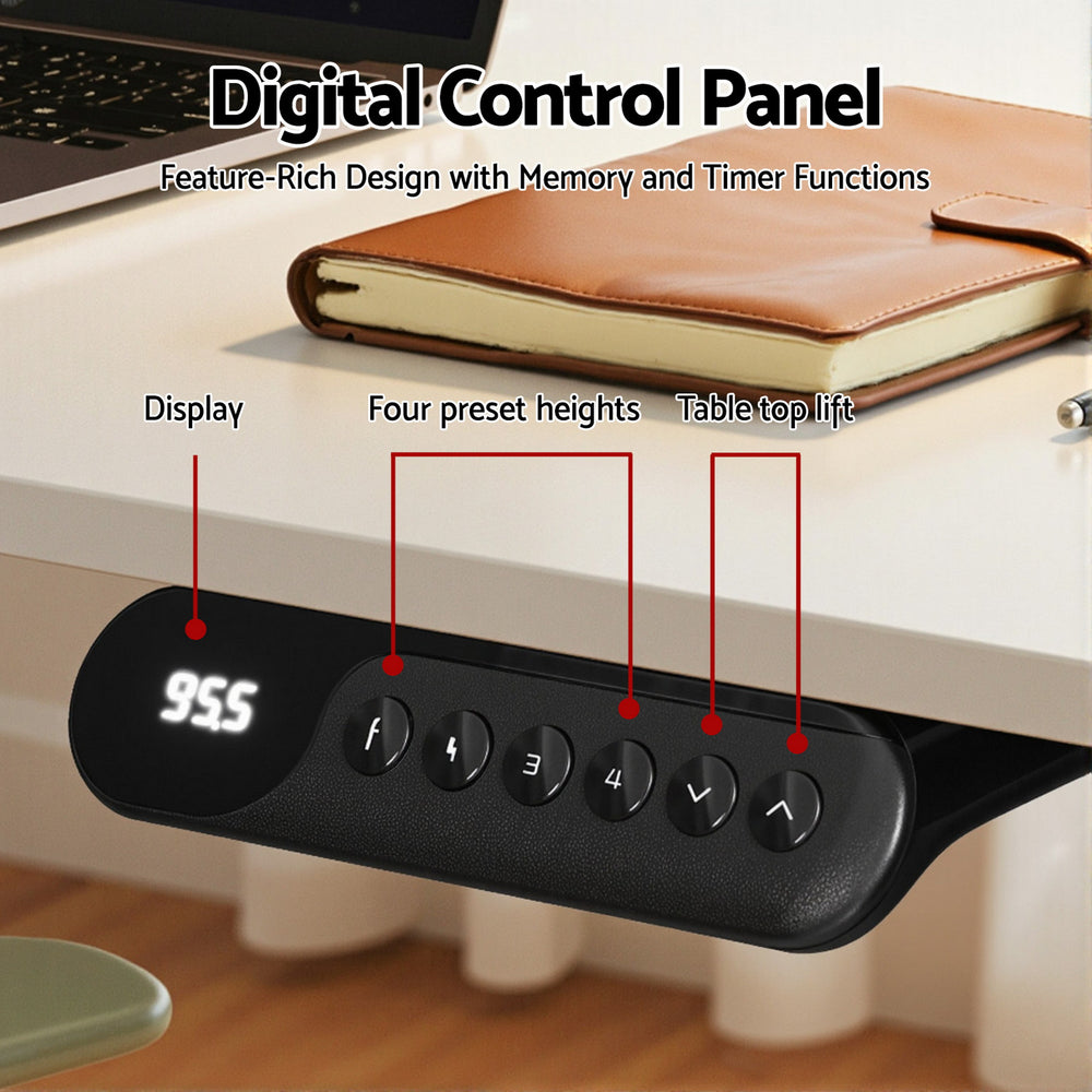 This versatile L-shaped electric standing desk? is a smart home office? upgrade. The splicing tabletop? allows flexible left or right setups to maximise corner space. Enjoy smooth, stepless height adjustment? (72-121cm) via a quiet dual motor? system, with four memory presets on the digital control panel. It features integrated cable management, a headphone hook, and is designed for easy set-up. The sturdy frame ensures reliable daily use for a dynamic work routine.