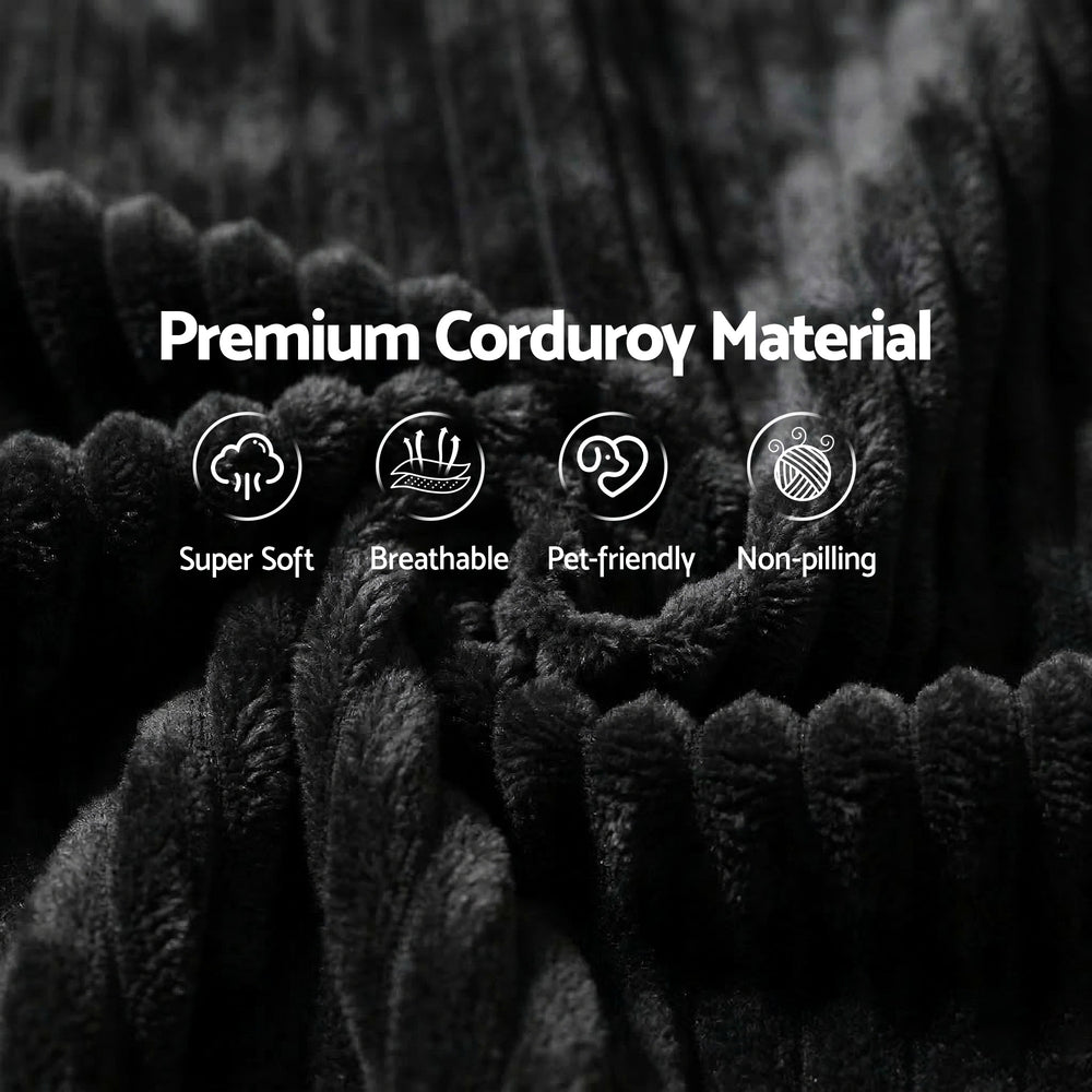 Artiss Modular Sofa Bed with Ottoman Sectional Boneless Couches for Living Room Corduroy Compressed Sofa Black