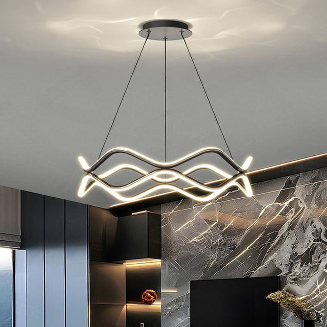 BAMDECOR A212/1 Black Modern Wavy Art Aluminum Light Fixture for Living Room Bedroom Indoor Decor