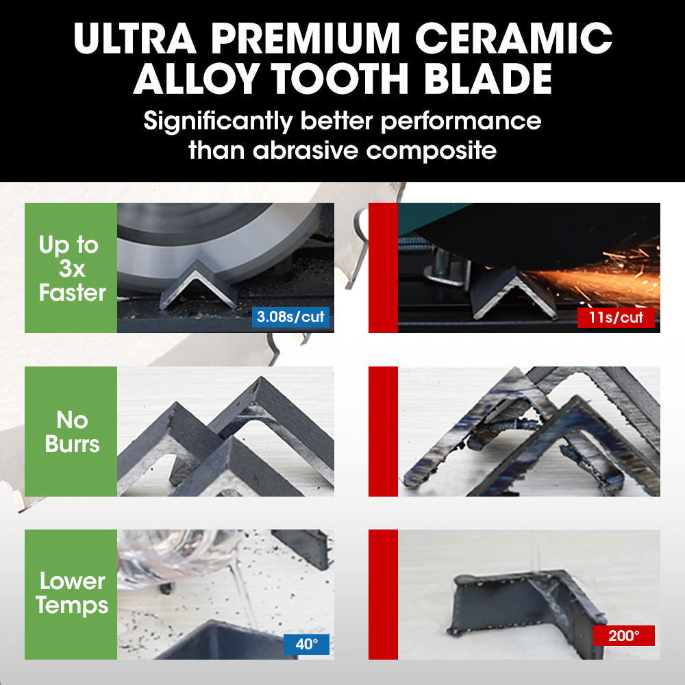 - Premium Ceramic Alloy tooth blade performs faster, cleaner and with minimal sparks and heat