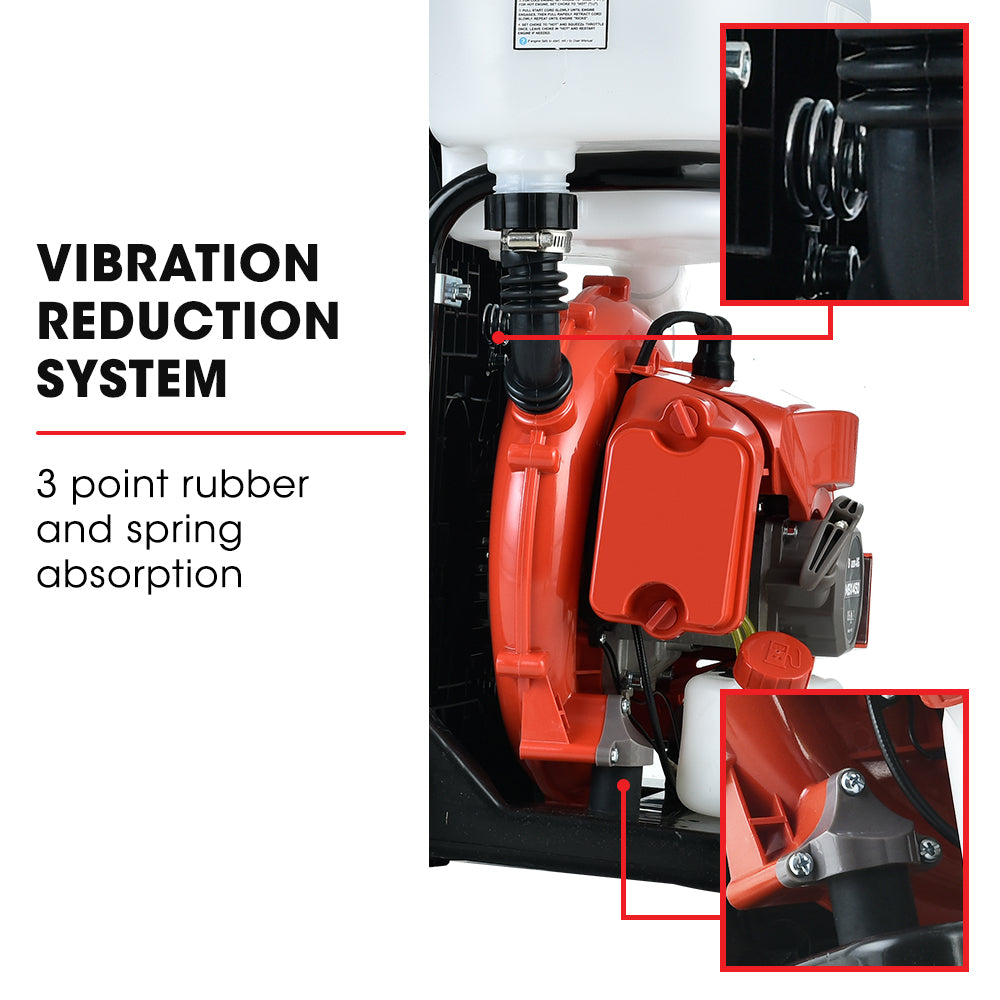 This Backpack Mist Blower offers a large 14L chemical tank and 1L fuel tank capacity–which means less messing around with refilling while you’re hard at work.