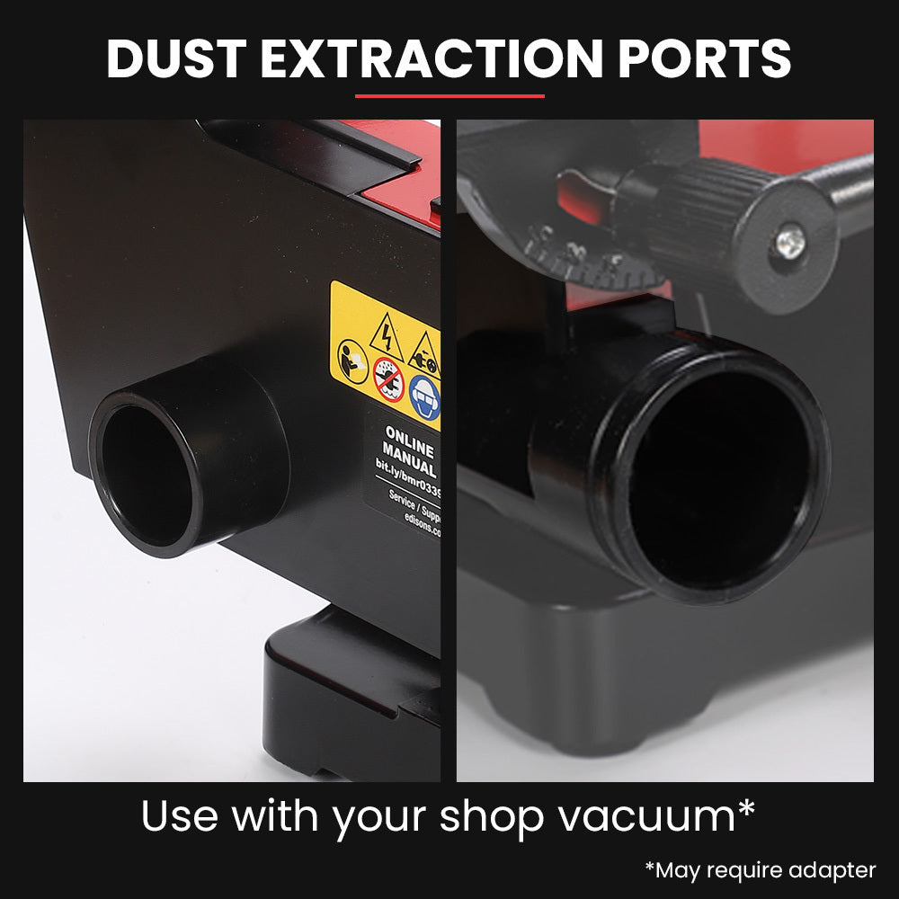 - Dual dust ports offer the option to connect a shop vac