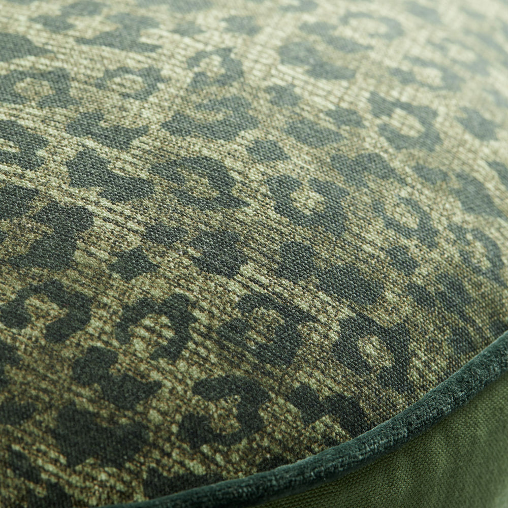 With it's trendy round shape, panther print in shades of green and red velvet piping, decorative cushion Pardus Luxury Cotton Round Filled Cushion 40 cm Diameter by Bedding House is a must have for every living and/or bedroom. The back of the cushion is plain green. The decorative cushion Pardus is made from 100% cotton and with a diameter of 40 cm. The cushion comes with a resilient polyester inner cushion. The cushion cannot be washed in the washing machine and is not suitable for tumble drying.