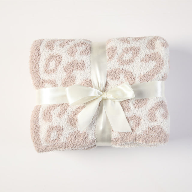 - 1 x Leopard Print Jacquard Knit Throw Blanket