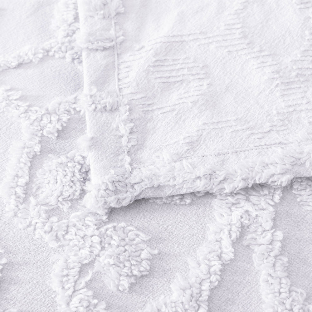 Bianca Ella White Cotton Chenille Floral Bedspread Set Queen