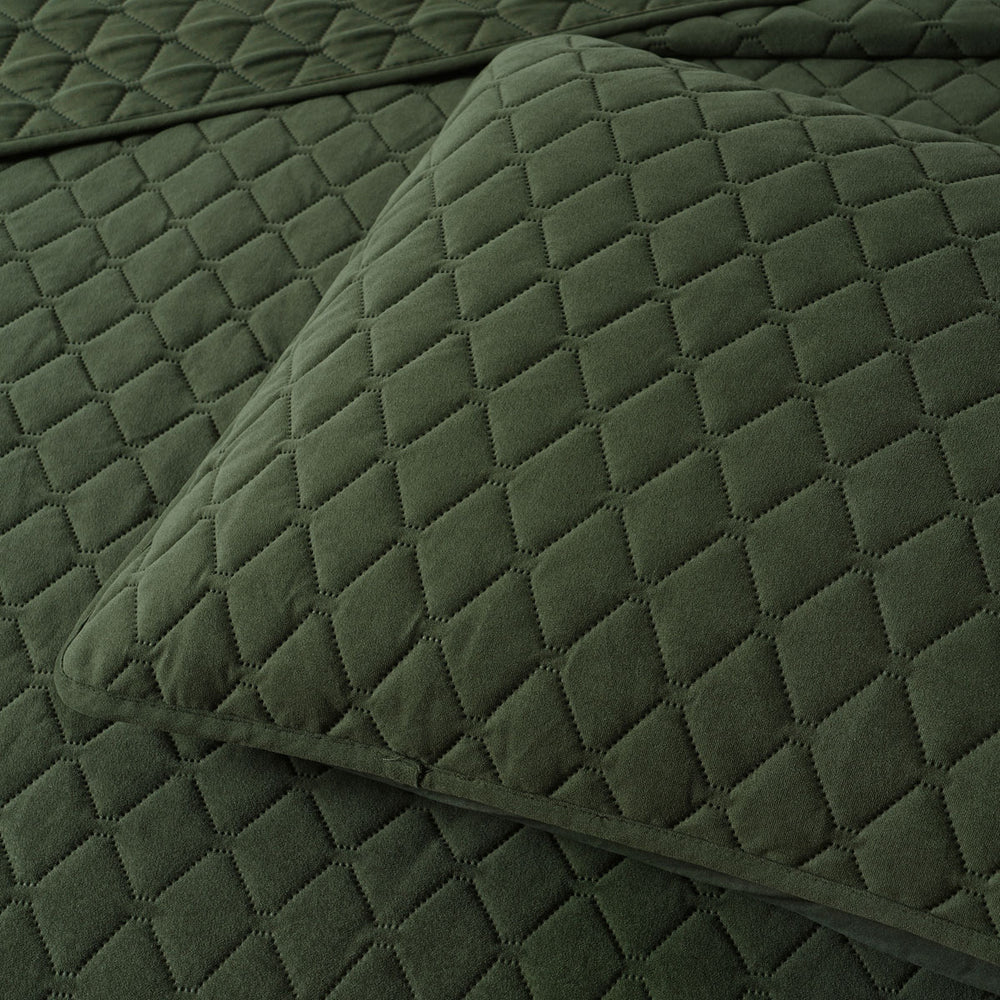 A simple yet classic design. Lester Olive Velvet Diamond Polyester Coverlet Set by Bianca is the perfect shade of olive. Featuring a diamond quilted pattern on a lovely soft velvet fabric. This design is finished with a beautiful, cuffed edge. Complete the look with matching accessories.