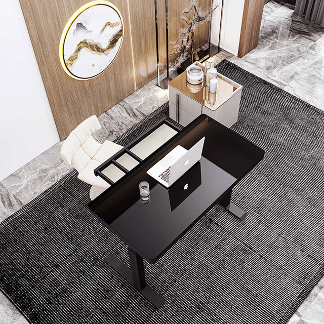 Black Color Electric Standing Desk Electric Height Adjustable Sit Stand Workstation Toughened Glass Top Single Motor Wireless Charger