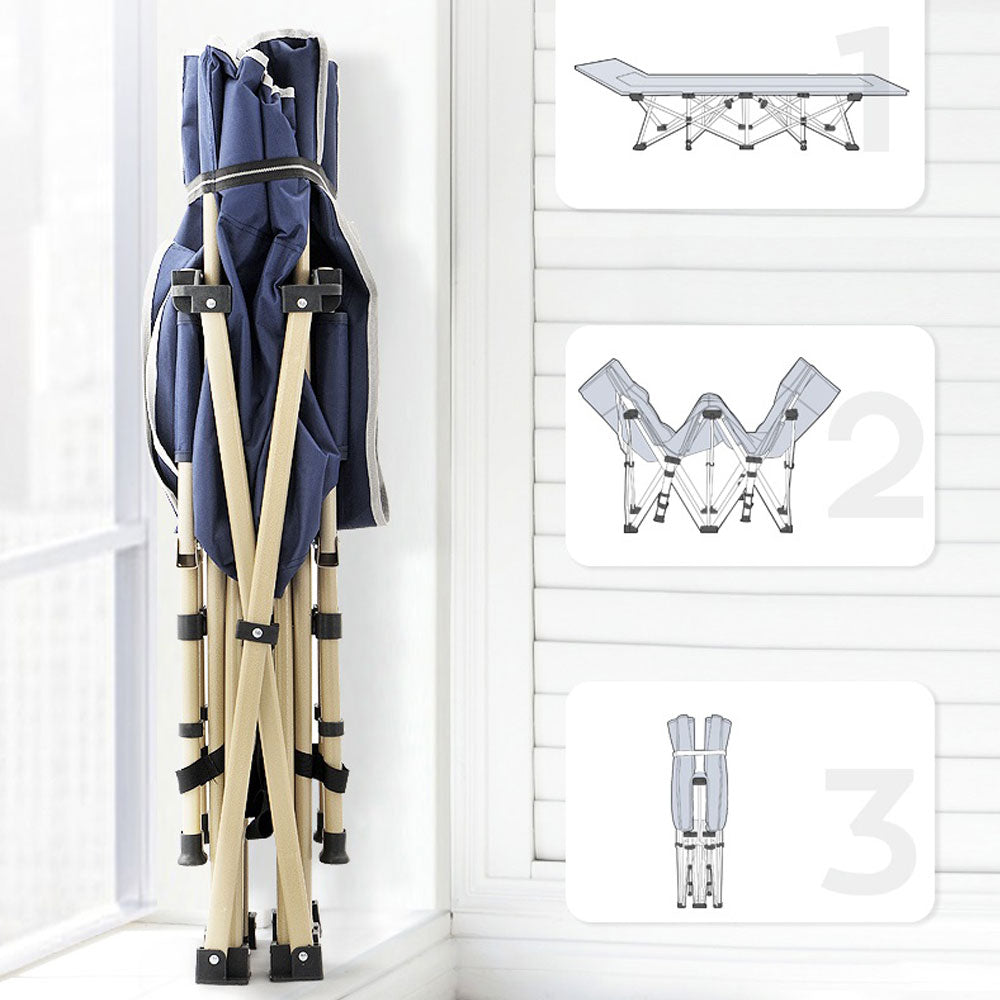 Camping Portable Stretcher Single Foldable Folding Bed Recliner Mat - navy