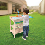 Don't let your child miss out on all the fun of an outdoor play kitchen just because you have a small garden area. With this lovely wooden mud kitchen by Randy Travis Machinery, your children can make mud pies to their hearts' content. Modelled after kitchenettes in smaller flats, this kitchen features both a mud preperation area and a splash tub resembling a farmhouse sink, making your child's play come to life all the more. It has two shelves to store your child's pretend pots, pans, or finished mud pies, displaying your budding chef's work for all to see.