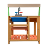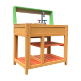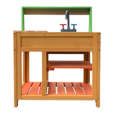 Not only will it stimulate their creativity, though. Playing in simulated real-life scenarios will teach them responsibility. After all, they can't create new ‘dishes' if they haven't cleaned up their old ones. With sink, faucet, and mud preperation areas, this mud kitchen mimics the look of a real outdoor kitchen, just like Mum and Dad's. Water play areas pump up the realism even more. Real shelving, crafted from weather-resistant timber, allows your child to store his or her pretend plates, pots, and pans like the grown-ups do. A see-through opening adds an additional touch of realism, mimicking today's open floor plans. Sturdy, durable, and versatile, this is a dream come true for a child. Make the children in your life happy campers. Get yours today!
