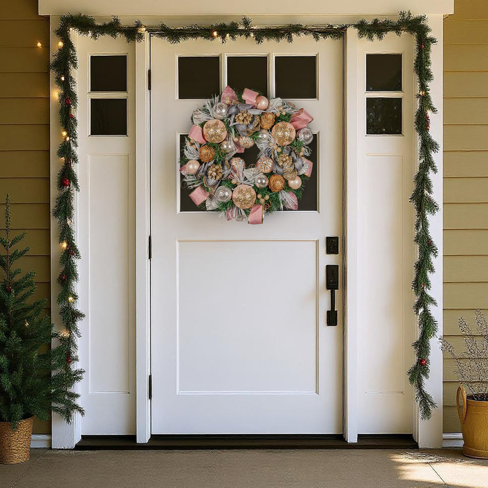 Christabelle 56cm Christmas Wreath Lush Pink Front Door Decoration Jewelled Baubles Flowers Pine Cones Ribbons Ornaments
