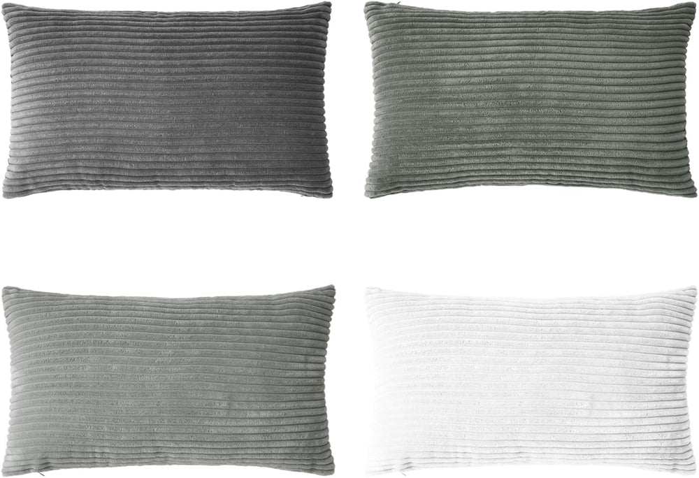 Corduroy Velvet Cushion Covers - Soft Velvet Fabric with Hidden Zipper - Stylish Mix of Grey Shades, 30cm x 50cm (Pack of 4)