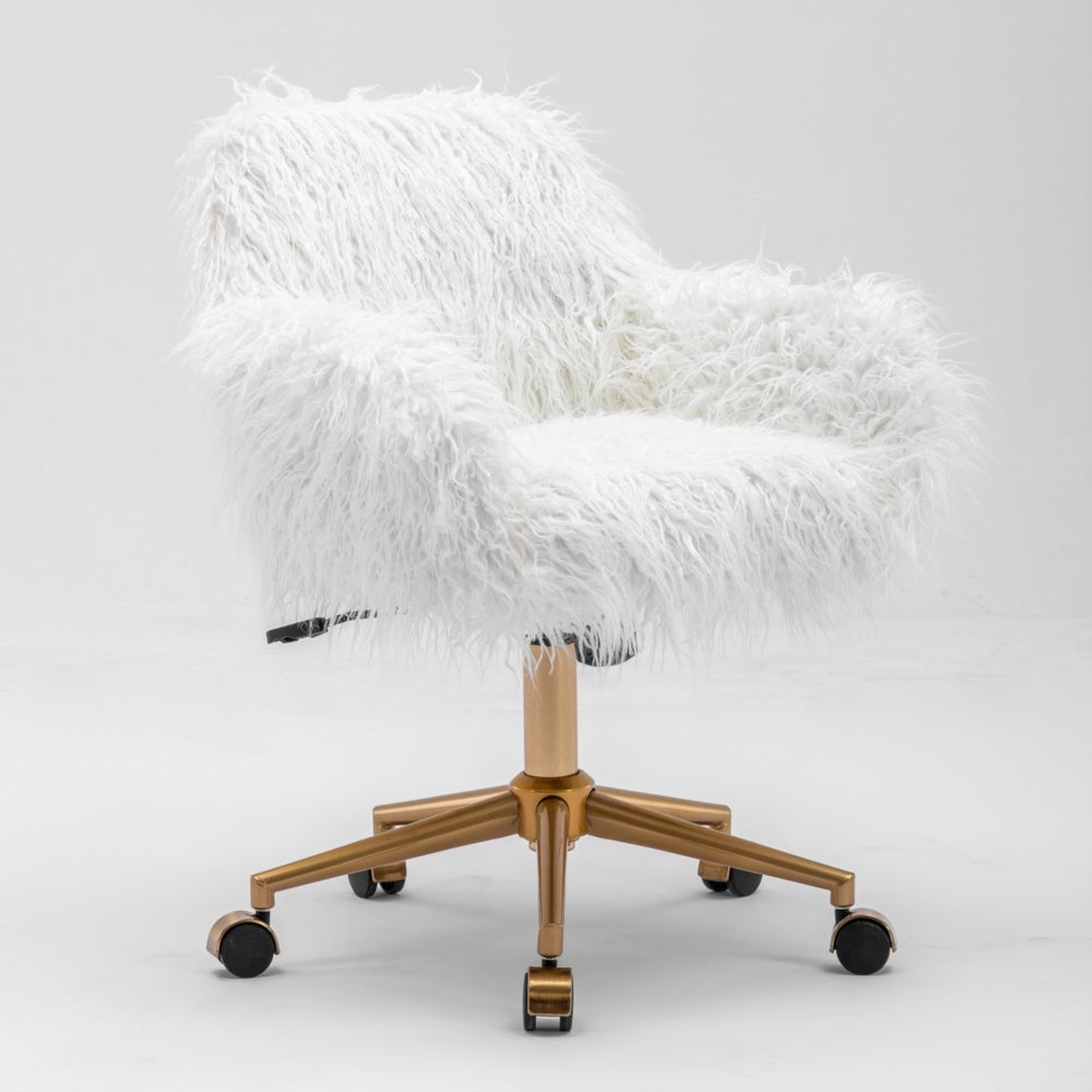 Fluffy Office Chair Faux Fur Modern Swivel Desk Chair for Women And Girls-White