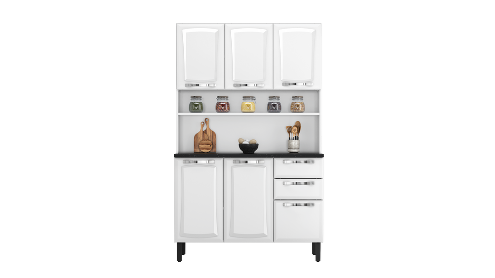 Compact Modern – Pratika White Steel Kitchen Cupboard with 6 Doors + 3 Drawers