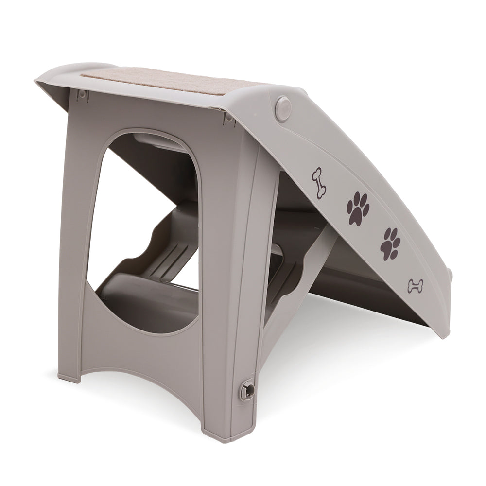 Furtastic Foldable Pet Stairs in Grey - 50cm Dog Ladder Cat Ramp with Non-Slip Mat for Indoor and Outdoor Use