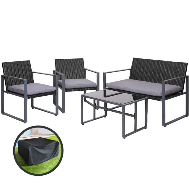 Gardeon 4 PCS Outdoor Sofa Set Rattan Furniture with Storage Cover Chairs Black