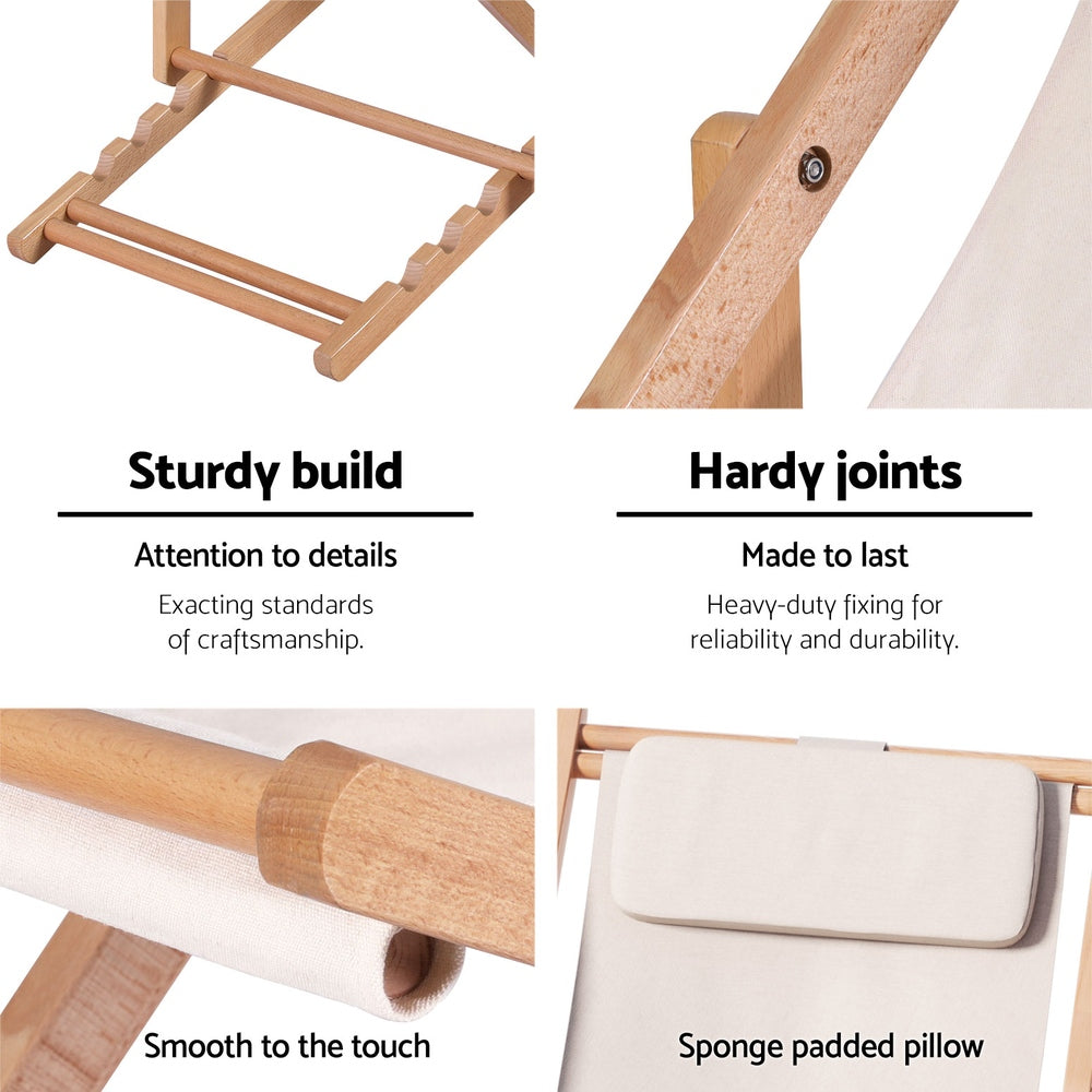 Gardeon Outdoor Deck Chair Wooden Sun Lounge Folding Beach Patio Furniture Beige