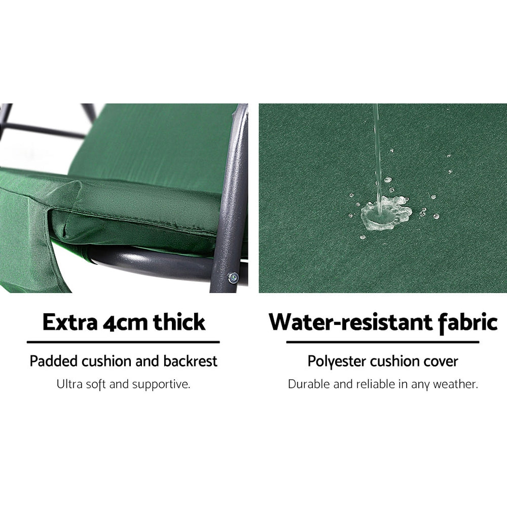 Gardeon Outdoor Swing Chair Garden Chair Bench Furniture Canopy 3 Seater Green