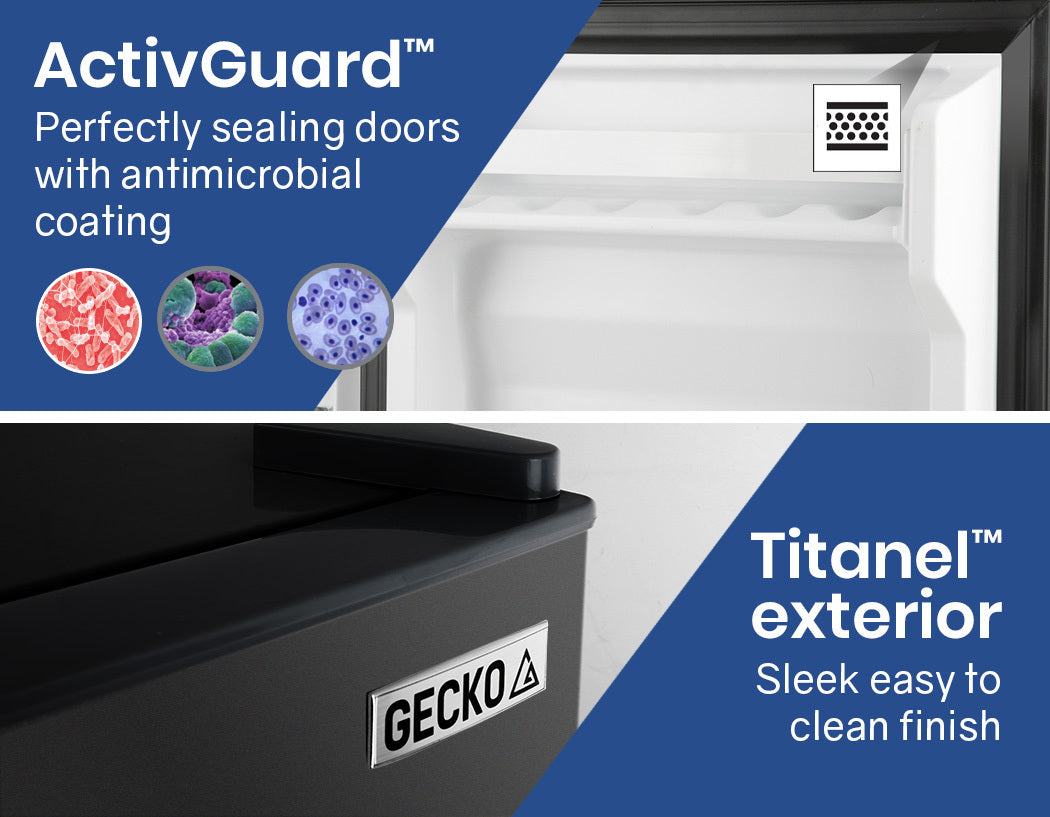 The Gecko is designed to perform in harsh Australian conditions. The latest compressor technology and thick insulation ensure that it can cool fast. It can also operate in ambient temperatures up to 38 degrees! The Gecko range features ActivSealTM technology that combines perfectly sealing doors with an anti-microbial coating to inhibit the growth of bacteria and mould. All this is wrapped in a sleek TitanelTM metal finish, ensuring it will look right at home anywhere, and is also ready for your souvenir magnet collection!