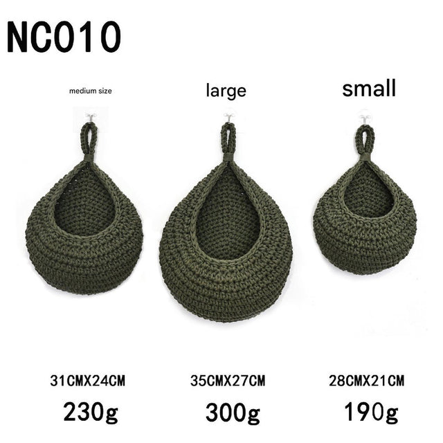Our Wall-Mounted Cotton Rope Hanging Fruit Baskets are a stylish and functional addition to any home. Perfect for storing fruits, vegetables, plants, or decorative items, these handmade baskets are crafted with eco-friendly cotton rope. Their teardrop design and natural texture add a touch of rustic elegance to kitchens, living rooms, or even outdoor spaces.