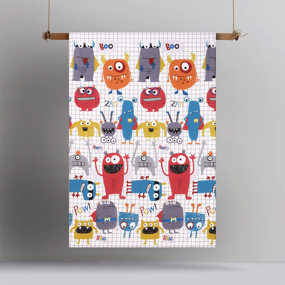 Stay comfortable all year round with this Monster Squad Glow in the Dark Quilt Cover Set by Happy Kids. Great value for money! This bright and fun design could add an element of style to an otherwise plain and boring bedroom decor. It features glow in the dark design. The quilt cover comes in white, black, blue, red, orange, grey, and yellow colour tones. To activate the glow in the dark feature of the Quilt Cover the lights must be left on for at least 15 minutes. Then simply turn off the lights after that and see the cool glow in the dark characters. Made from Polyester fabric with 180 Thread Count.