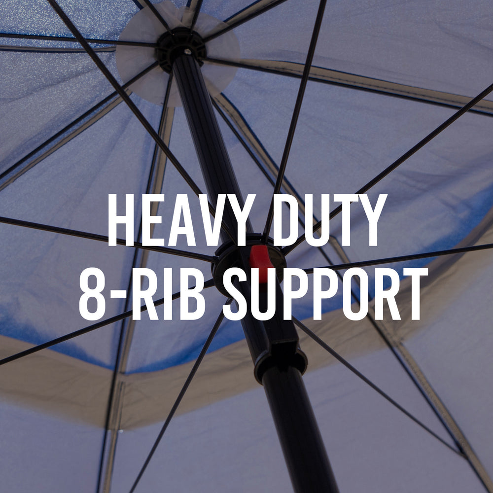The specially designed umbrella will suit the most rugged of conditions, with UV, water, and wind resistant engineering, the huge 8-foot surface area will keep yourself and your loved ones sheltered all day long.