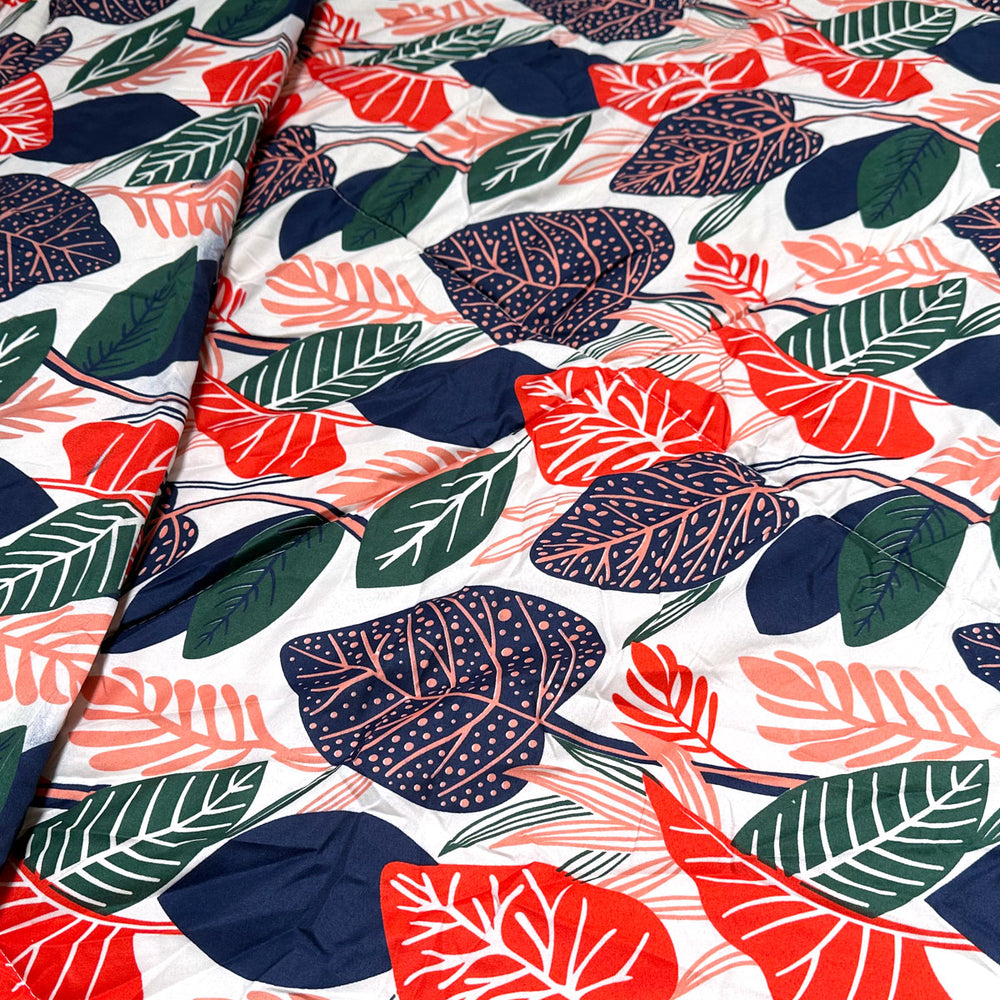 - Tropical Leaves - Red, Coral, Forest, Green, Navy, Off White