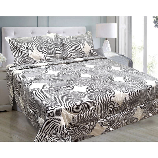The 3 Pce Light Weight Microfiber Comforter Set Oscar Queen/King by Hotel Living is a bedding set that offers comfort and style for your bedroom. Light-weight. Microfiber face fabric with peach skin feel. Approx 200gsm -220 gsm polyester filling. The pillowcase patterns are randomly cut from the matching comforter face fabric. Comforters are quilted, Should there be any minor imperfect prints. An option flip it over as other side has the same prints, is fully reversible!