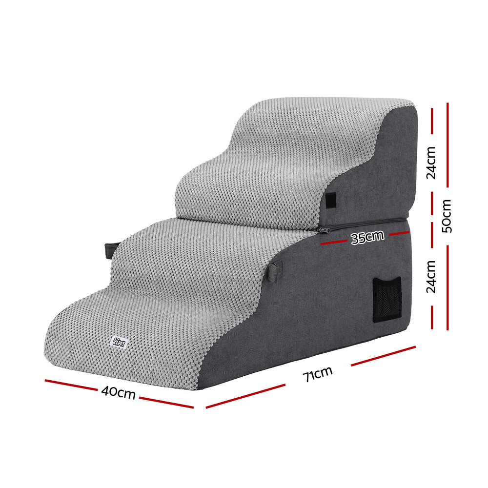 i.Pet Dog Stairs and Bed 2-in-1 Sofa Car Foam Non-Slip Washable Pet Stairs Indoor Grey