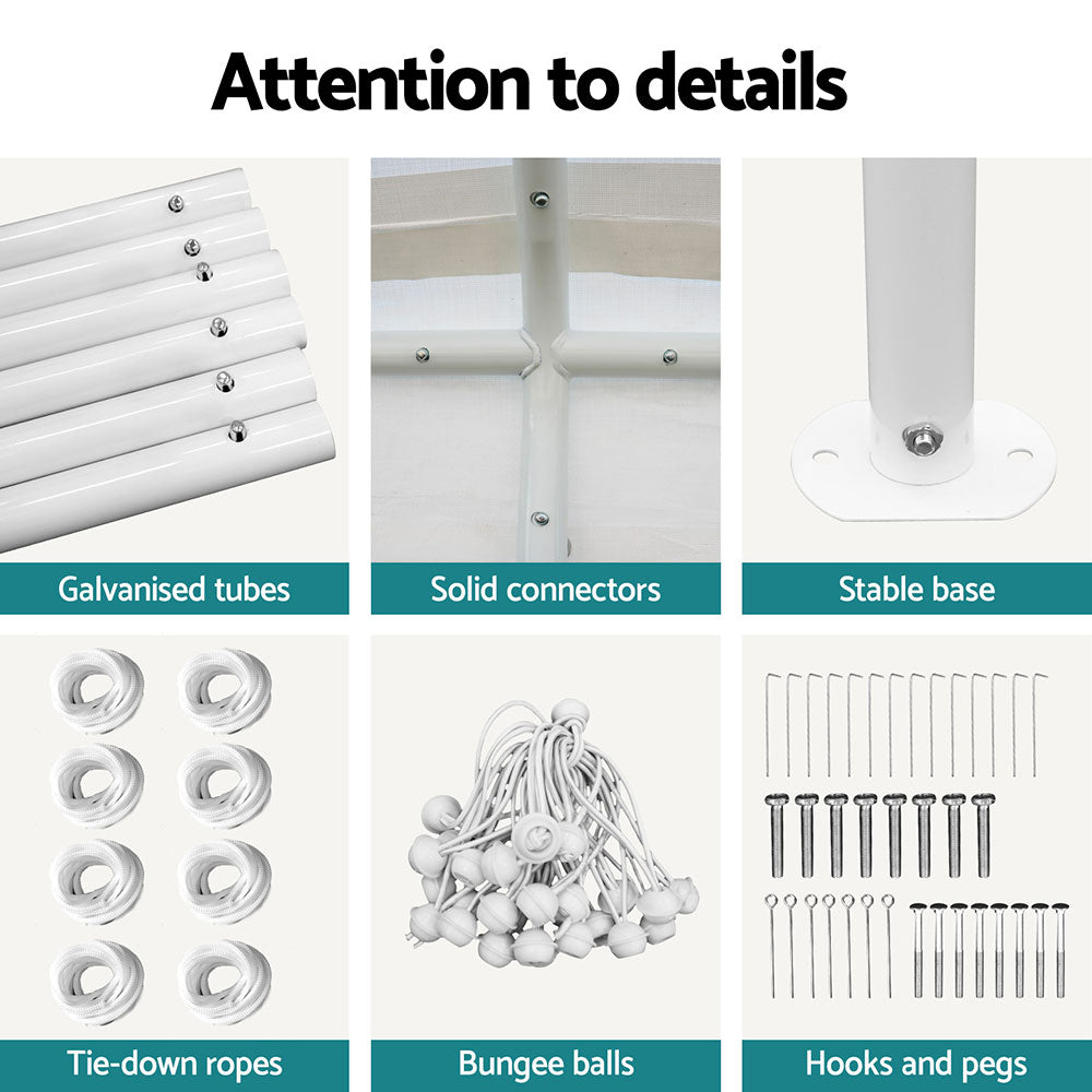 Protect your vehicle and create versatile outdoor spaces with the Instahut Carport. Constructed with heavy-duty powder-coated steel, this carport is both UV and water resistant, ensuring durability and strength. Its sturdy legs and struts provide robust support, while the simple setup allows you to have it ready in minutes. Ideal for cars, markets, camping, garage and yard sales, school events, and trade shows, the Instahut Carport is your reliable outdoor shelter solution.