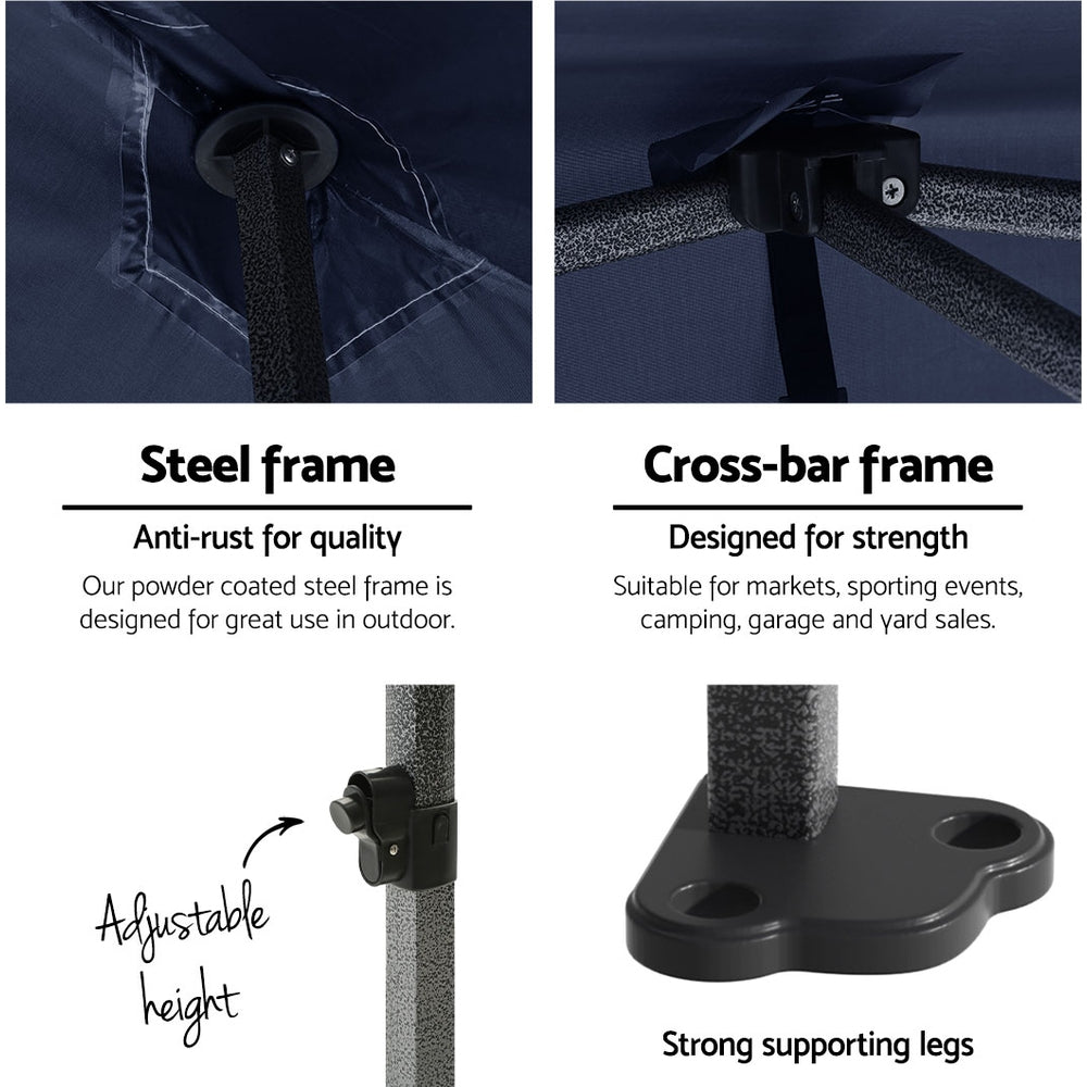 Instahut Gazebo Pop Up 3x6m w/Base Podx4 Marquee Folding Outdoor Wedding Camping Tent Shade Canopy Navy
