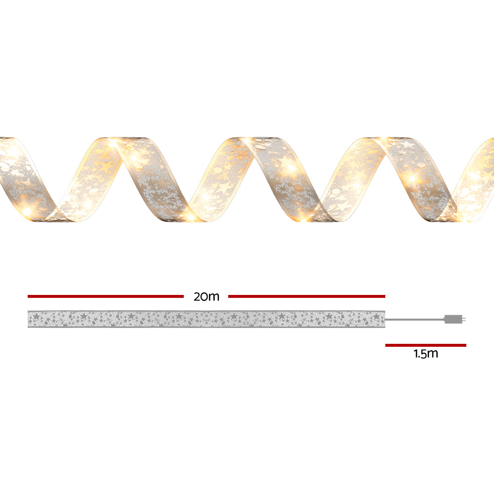 20M Christmas Lights Ribbon Fairy Light 200 LED Warm Jingle Jollys