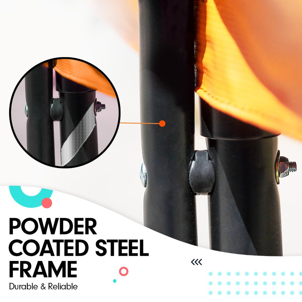 This trampoline uses linked legs for superior stability and structure of the legs also minimises the tendency for legs to dig into the ground. Legs also feature re-enforced joint bars to enhance strength and stability.