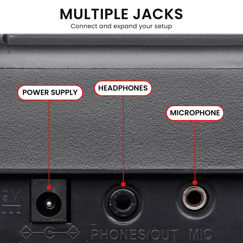 Unleash your inner composer using the rhythm programming function, enabling you to construct personalised beats and rhythms effortlessly. The record and playback function, plus the 3-step lesson modes ensure that every practice session goes smoothly. Plus, you can play this keyboard at home or on the go simply by adding batteries! Let your melodies flow and your creativity soar with this versatile keyboard by your side.