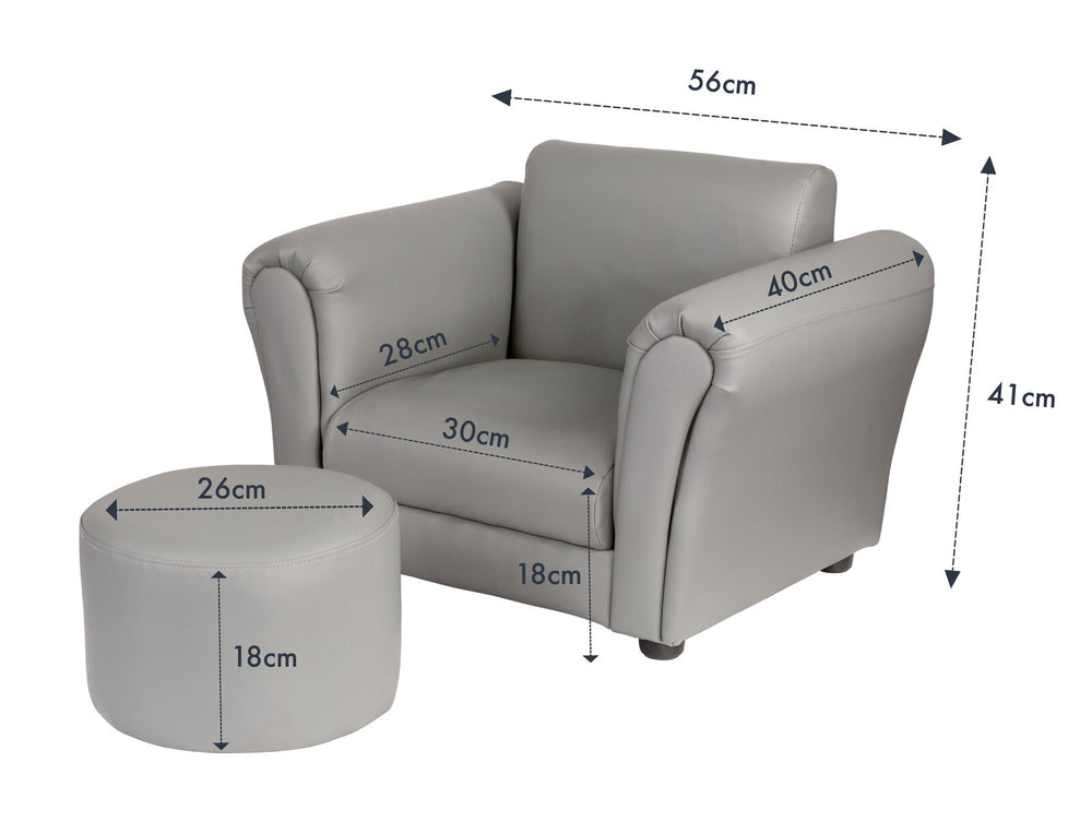 Ember Kids Grey Couch Sofa Chair with Footstool