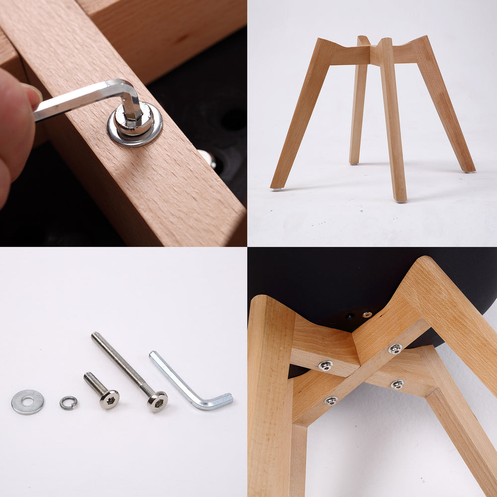 The chair seat is made of high-quality polypropylene plastic with an extra PU leather padded cushion, providing maximum durability and comfort without sacrificing its original aesthetic design. Besides, the beech wooden legs will add extra strength to the chair, giving it an extra stability.