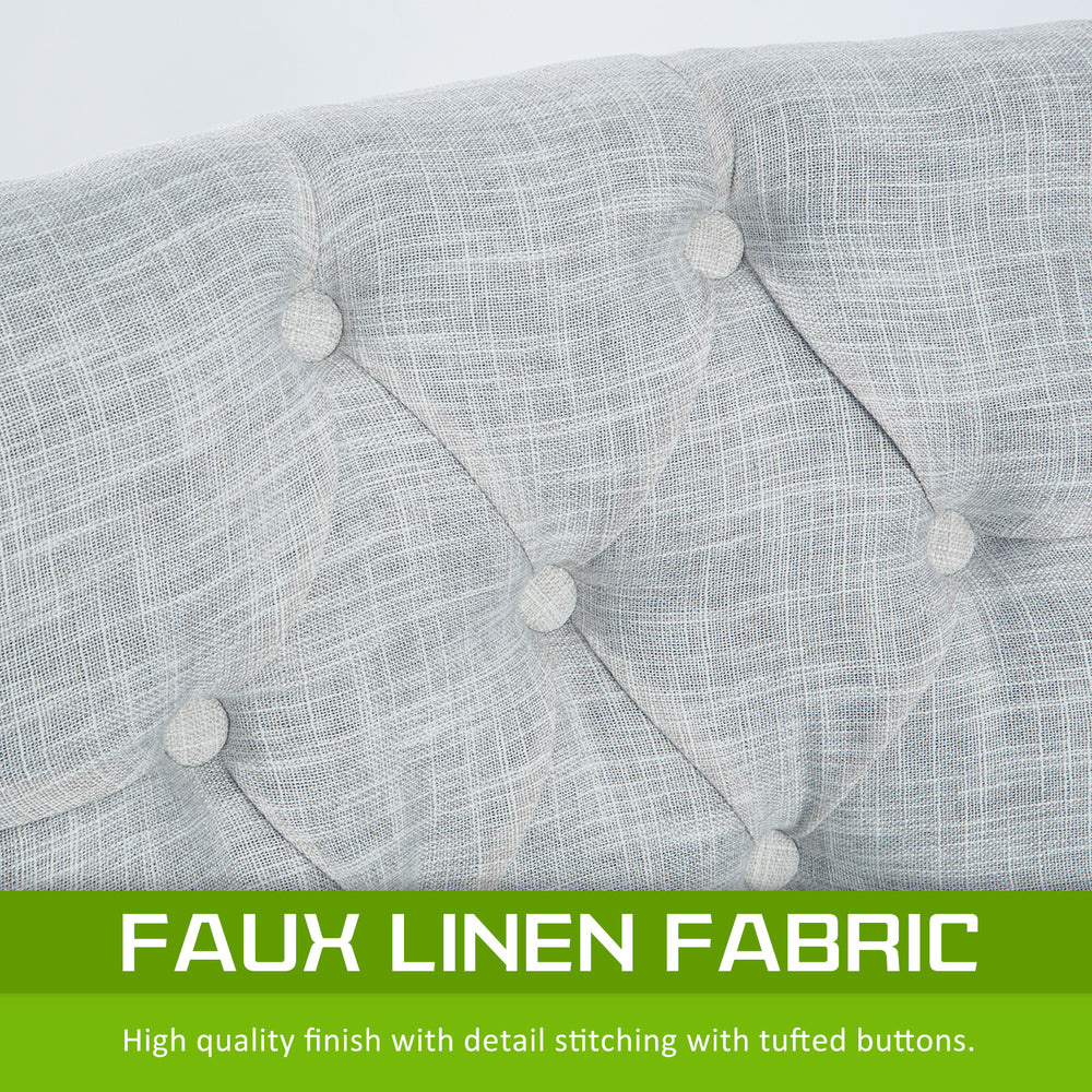 - Elegant fabric upholstered with deep tufting