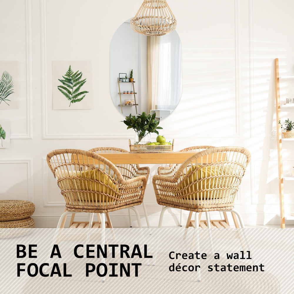 The LED oval mirror is sleek and frameless in design comes with an energy-efficient LED light strip place around the back of the mirror. This illuminated mirror besides saving more energy and cost than light bulbs, but also has a long-lasting lifespan of up to 50,000 hours. Not to mention it combines dual-channel LEDs greatly affect aesthetics and ambience. You can adjust its colour temperature range from a mix of warm yellow and cool white LEDs and cross-dim between the two with a simple long touch.