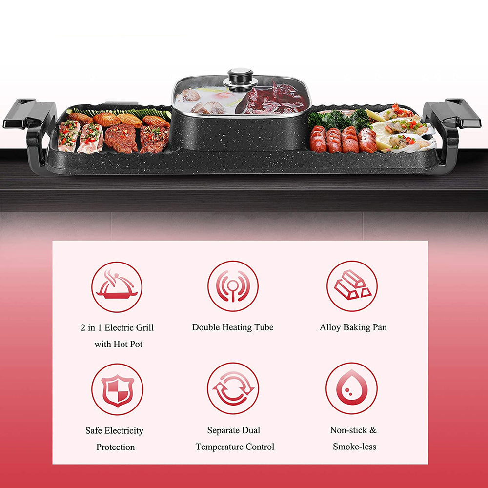 Large Electric Grill Hot Pot Hotpot 2 In 1 Electric Barbecue Non-Stick Pan Grill/Korean BBQ/Shabu Shabu 2200W