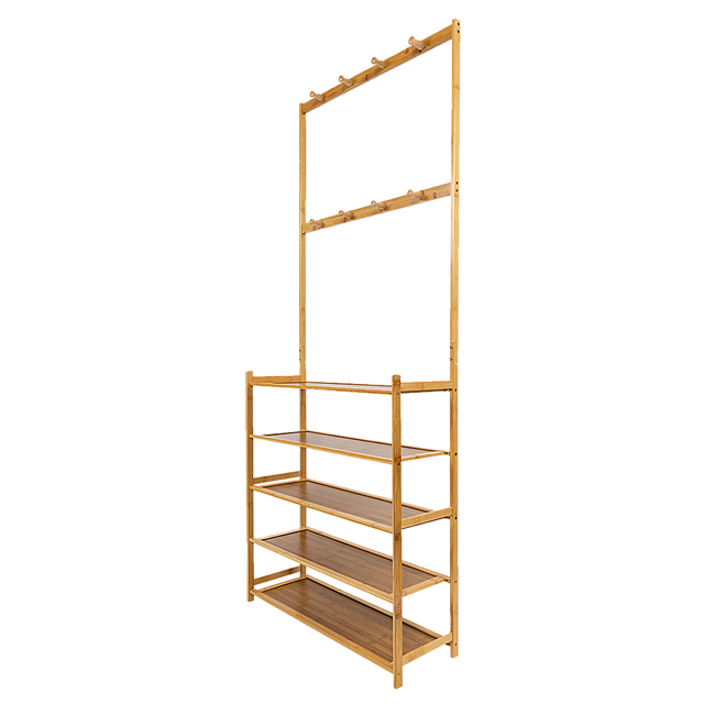 For a sleek piece of practical furniture, you need to look no further than this 5-tiered storage unit. This is a furniture item with multiple functions as a hat and coat stand, a place to hang or fold clothes, or as a multi-tiered shoe rack. It will look equally stunning both in a hallway or in a bedroom or dressing room reducing clutter and adding a stylish touch to your interior design.