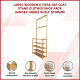 Large Wooden 5 Tiers Hat Coat Stand Clothes Shoe Rack Hanger Hooks Shelf Storage