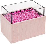 Leather Makeup Brush Cosmetic Organizer Storage Box with Pink Pearls and Acrylic Cover (Pink)