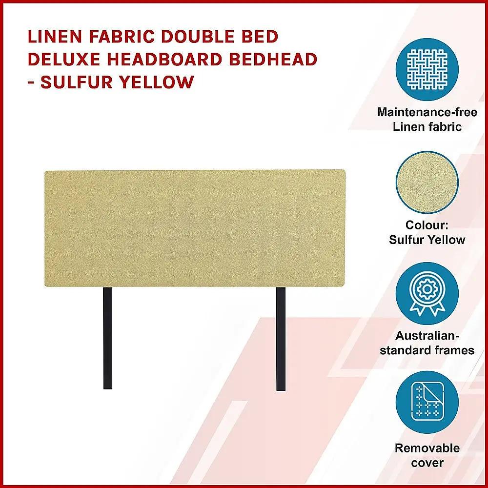 Linen Fabric Double Bed Deluxe Headboard Bedhead - Sulfur Yellow