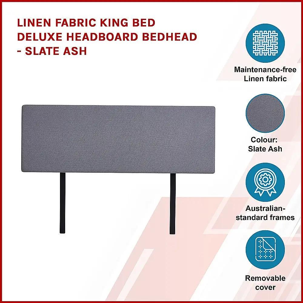 Linen Fabric King Bed Deluxe Headboard Bedhead - Slate Ash