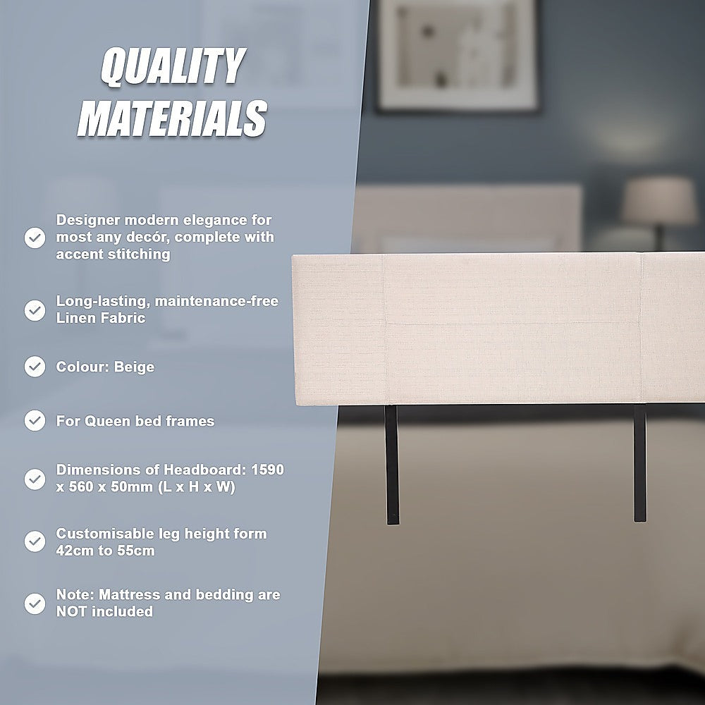 Linen Fabric Queen Bed Headboard Bedhead - Beige