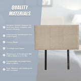 This headboard for standard Single-sized bed frames is created with quality materials, including easy-to-maintain Linen Fabric that will maintain its sophisticated look for many years to come. This particular model comes with elegant stitching accents that provide just the right level of understated pop. A neutral beige will blend seamlessly with a wide variety of bed frames and other bedroom furniture.