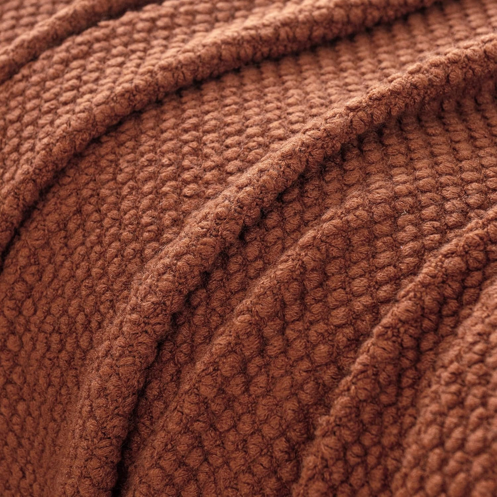 Micro Plush Knitted Woven Throw Blanket - Terracotta