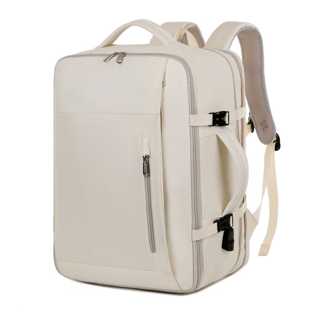 Beige Expandable Backpack with USB Port - Multi-Functional Outdoor, Commuter & Laptop Bag
