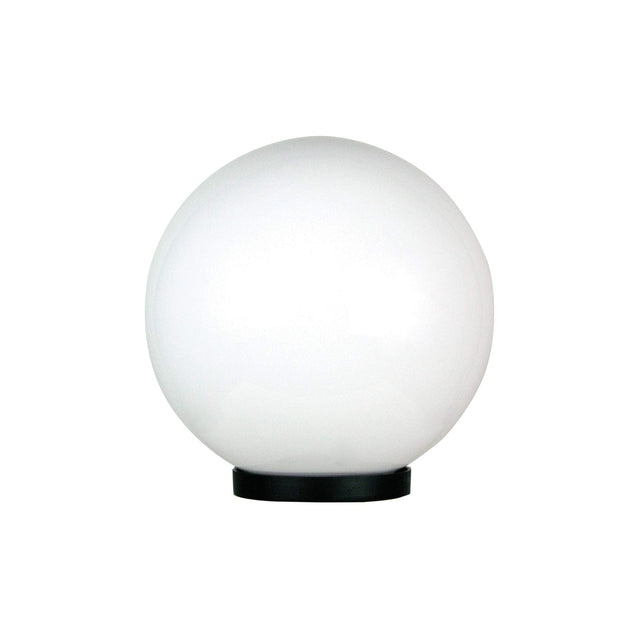 Galactic opal acrylic outdoor post top is available in many sizes. Supplied complete with a black polycarbonate base to suit a 60mm outside diameter post. Can also be attached directly onto a flat surface. E27 ceramic lampholder. Posts and accessories ava.
