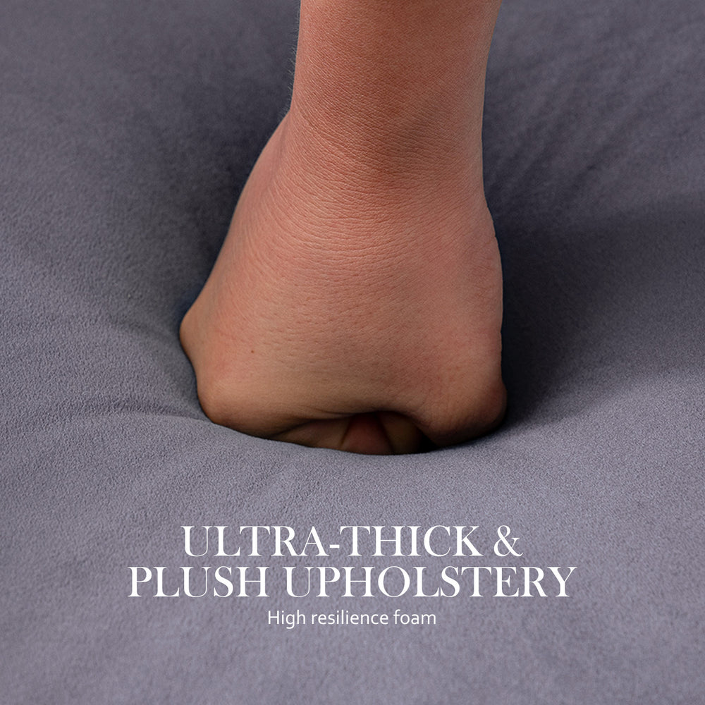 Our La Bella Velvet Footstool Ottoman is just an incredible and useful piece to please. The stool not only has a vivid colour and a simple silhouette made it a perfect pairing for the matching armchairs and sofa. It also keeps gives your feet a natural relaxation improves blood circulation.